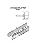 Profile in stainless steel AISI 430 or stainless steel AISI 304. Provided in bars of 3 meters. Min. radius of curvature: 500 mm. For use with side guides Ref. 345, 423, 339, 422, 344, 421.