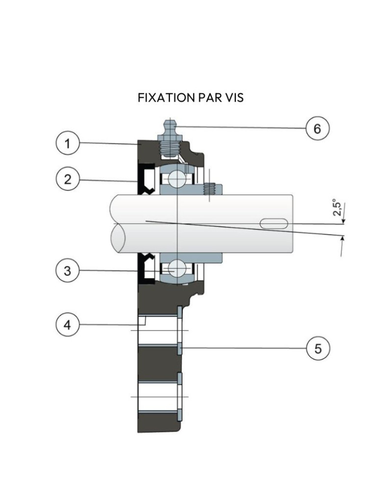 Erreur maximale d’alignement de l’arbre 2,5°.